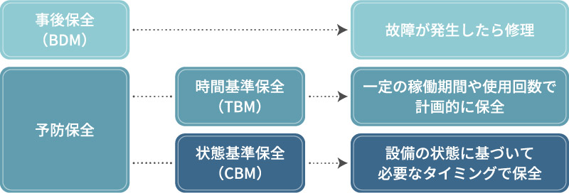상태기준보전(Condition-Based Maintenance)은 설비의 실시간 데이터를 감시하고 상태에 따라 메인터넌스를 실시하는 수법입니다.이를 통해 필요한 타이밍에 최적의 보전이 가능해져 낭비와 위험을 줄일 수 있습니다.
